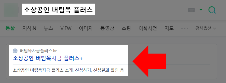 1) 검색사이트에 '소상공인 버팀목자금 플러스'로 입력하신후에 사이트로 이동합니다.