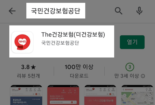 1) 앱 스토에서 '국민건강보험공단' 이라고 검색하신 후에 어플을 설치후 열어 줍니다.