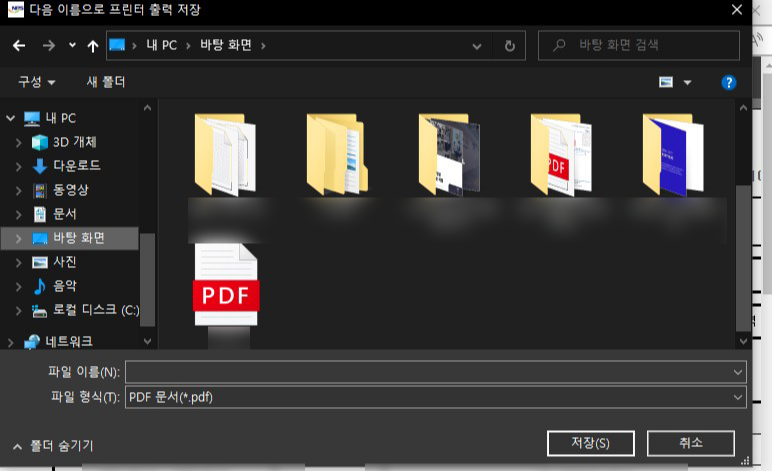 ③ PDF문서임을 확인하고 인쇄버튼을 클릭하시면 프린트 되는것이 아닌 위에 우측 화면처럼 'PDF로 저장하실 수 있습니다.