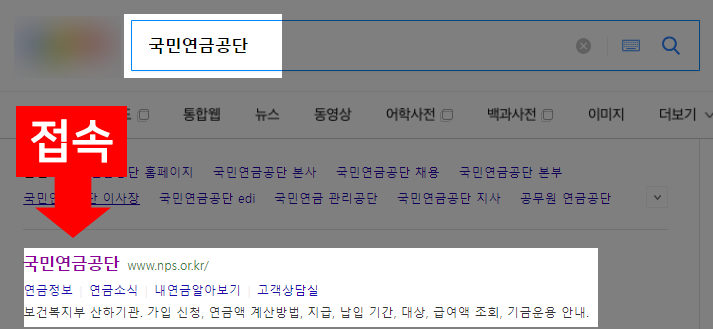 ① 먼저 검색 사이트에서 '국민연금공단' 검색하신후에 사이트에 접속합니다.