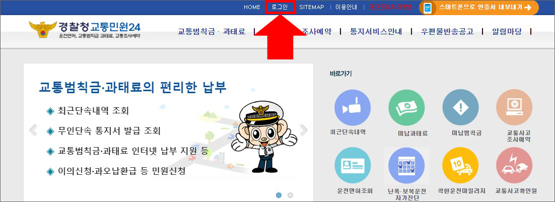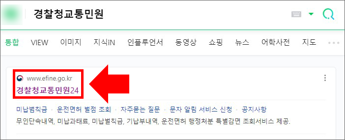 ① 검색사이트에 '경찰청교통민원' 이라고 검색하신 후에 홈페이지에 접속 합니다.