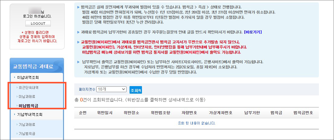 2. 교통범칙금·과태료 조회방법