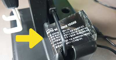 자동걷기계가 작동하는 부분에 스티커가 붙어 있어 흔들리지 않도록 고정되어있습니다.
